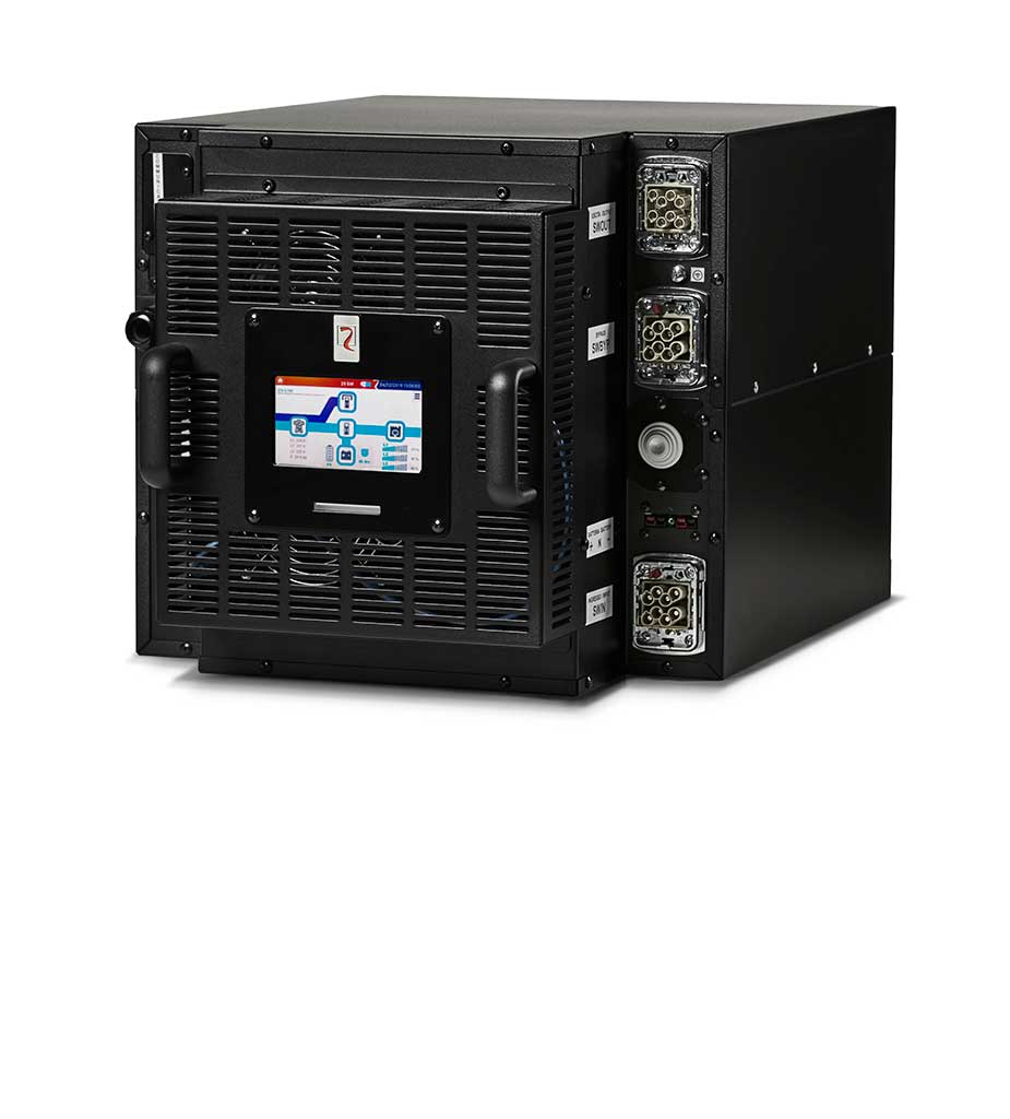 Sentryum Rack can be used in a standalone configuration, or in a rack cabinet, where it is possible to install up to 3 modules of 20 kVA / kW reaching power of 60 kVA / kW: in the event of a request for greater power availability, it is possible to reach up to 160 kVA / kW with multiple cabinets installed in parallel (compatibility guaranteed for all standard 19-inchrack cabinets). For standalone installations it is also possible to place the individual modules on their right side by rotating the display 90° counterclockwise.